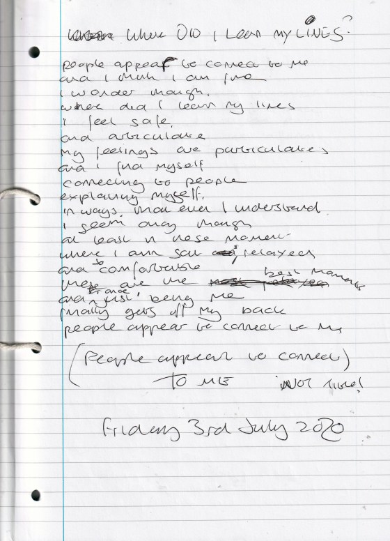 Where Did I Learn My Lines – Written Friday 3rd July 2020 (Aged 45)