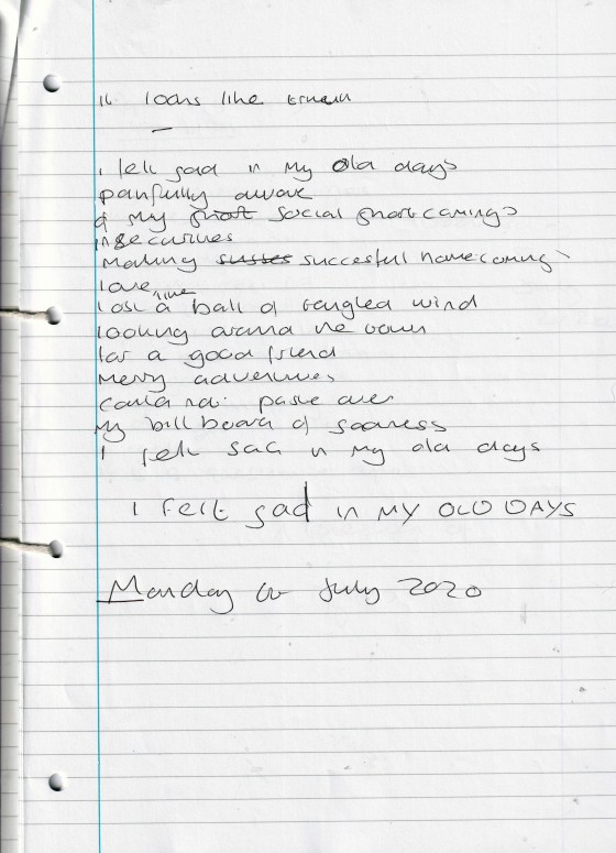 Piece Without Title and Three Verses – Written Monday 6th July 2020 (aged 45)