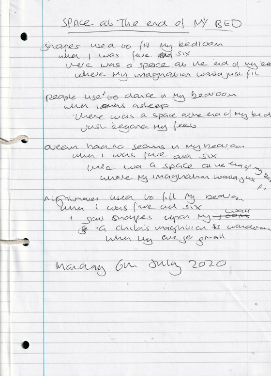 Space At The End of My Bed – Written Monday 6th July 2020 (Aged 45)