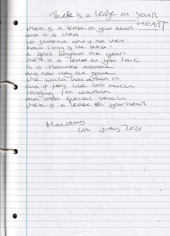 There is a Lease on Your Heart – Written Monday 6th July 2020 (Aged 45)
