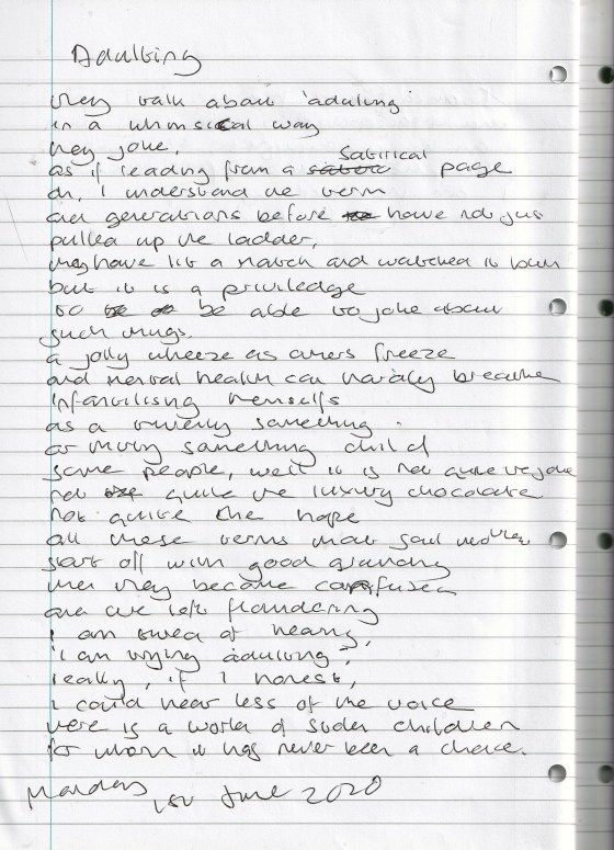 Adulting – Written Monday 1st June 2020 (Aged 45)