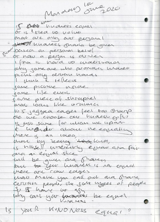 Is Your Kindness Equal? – Written Monday 1st June 2020 (Aged 45)