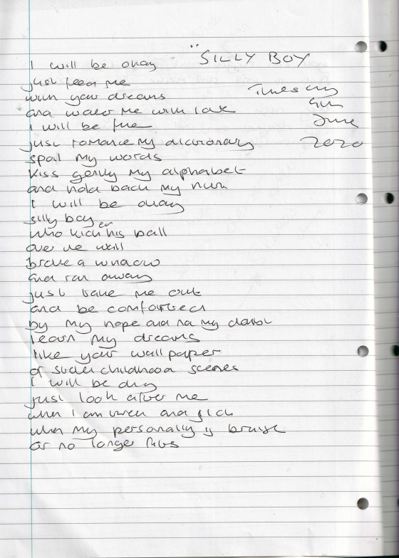 Silly Boy – Written Tuesday 9th June 2020 (Aged 45)