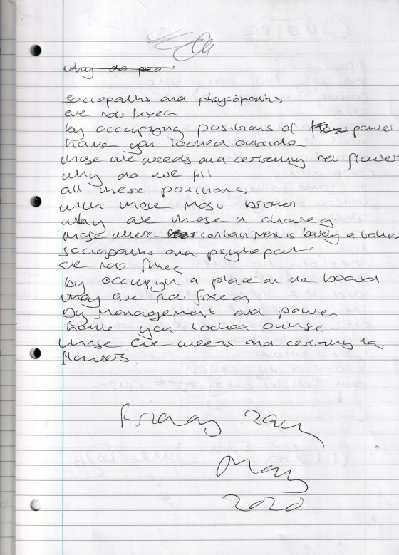 Sociopaths and Psychopaths – Written Friday 29th May 2020 (Aged 45)