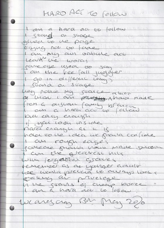 Hard Act to Follow – Written Wednesday 13th May 2020 (Aged 45)