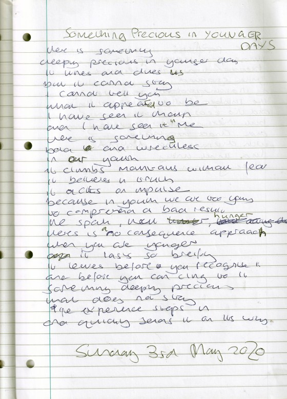Something Precious In Our Younger Days – Written Sunday 3rd May (Aged 45)