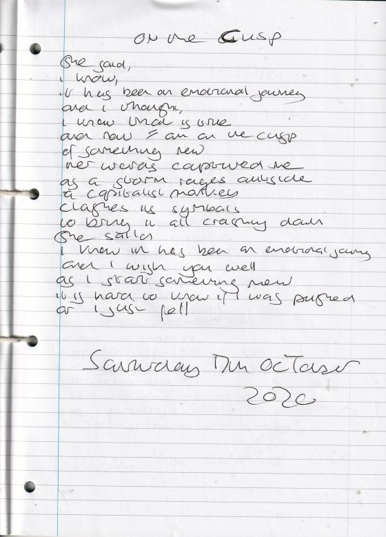 On the Cusp – Written Saturday 17th October 2020 (Aged 45)