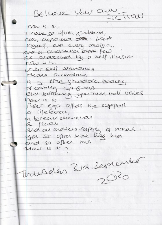 Believe Your Own Fiction – Written Thursday 3rd September 2020 (Aged 45)