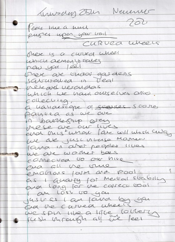Curved Wheels – Written Thursday 25th November 2021 (Aged 46)