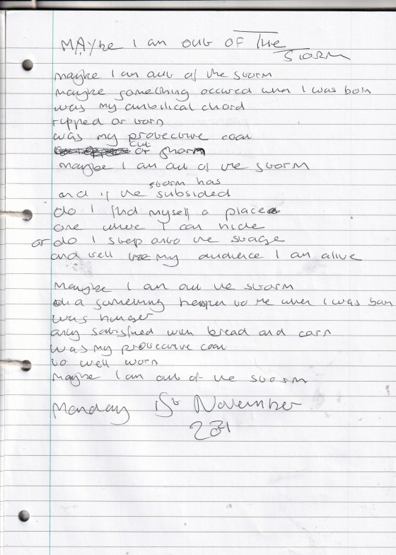 Maybe I Am Out Of The Storm – Written Monday 1st November 2021 (Aged 46)