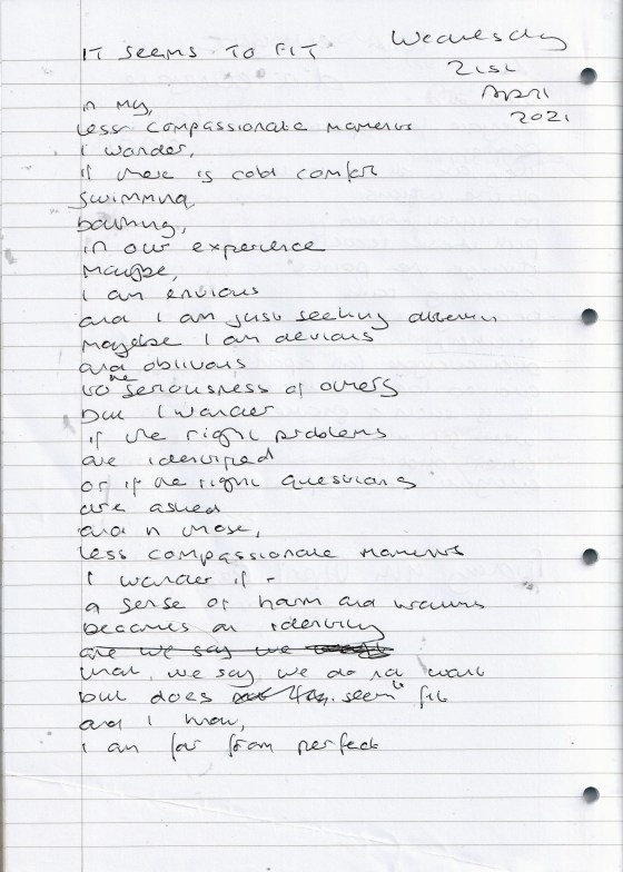 It Seems to Fit – Written Wednesday 21st April 2021 (Aged 46)