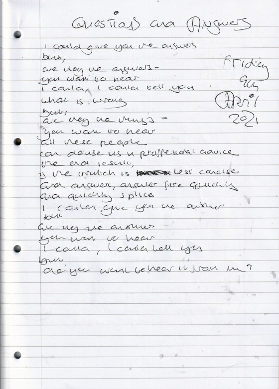 Questions and Answers – Written Friday 9th April 2021 (Aged 46)