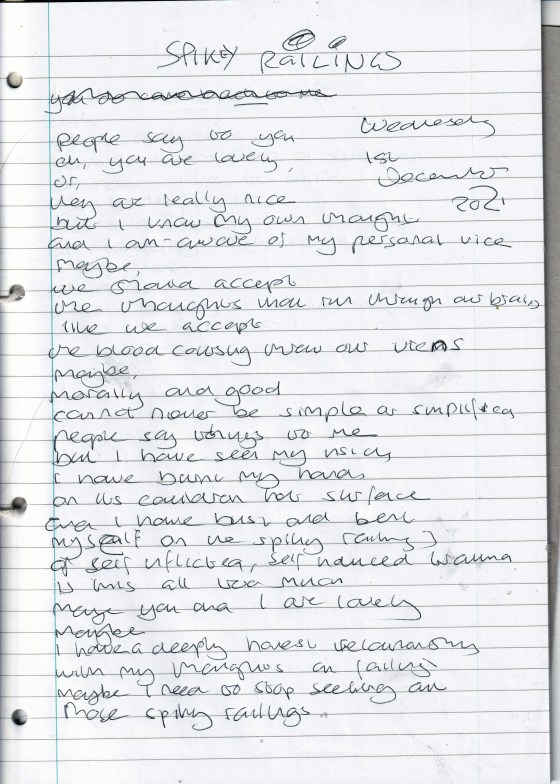Spiky Railings – Written Wednesday 1st December 2021 (Aged 46)