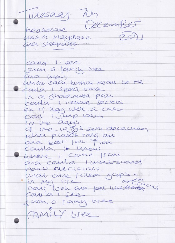 Family Tree – Written Tuesday 7th December 2021 (Aged 46)