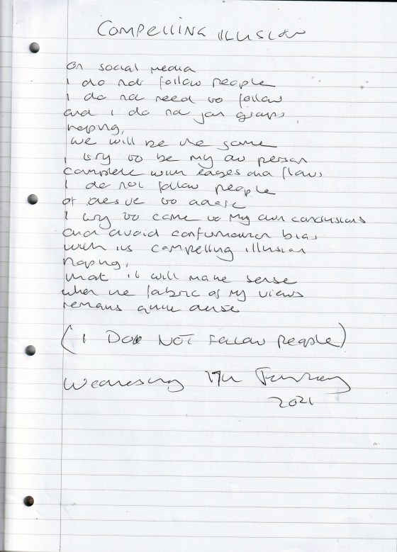 I Do Not Follow People – Written Wednesday 17th February 2021 (Aged 45)