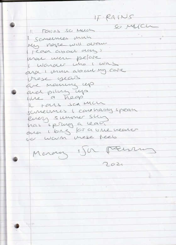 It Rains So Much – Written Monday 15th February 2021 (Aged 45)