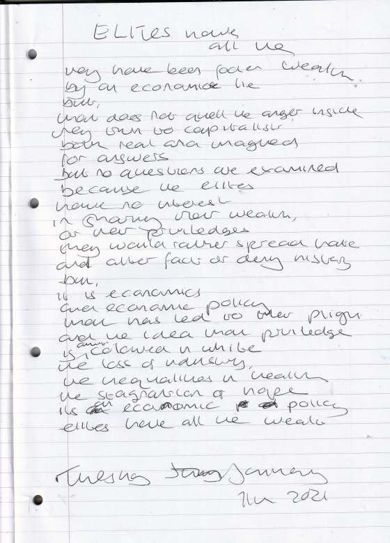 Elites Have All the Wealth – Written Monday 11th January 2021 (Aged 45)