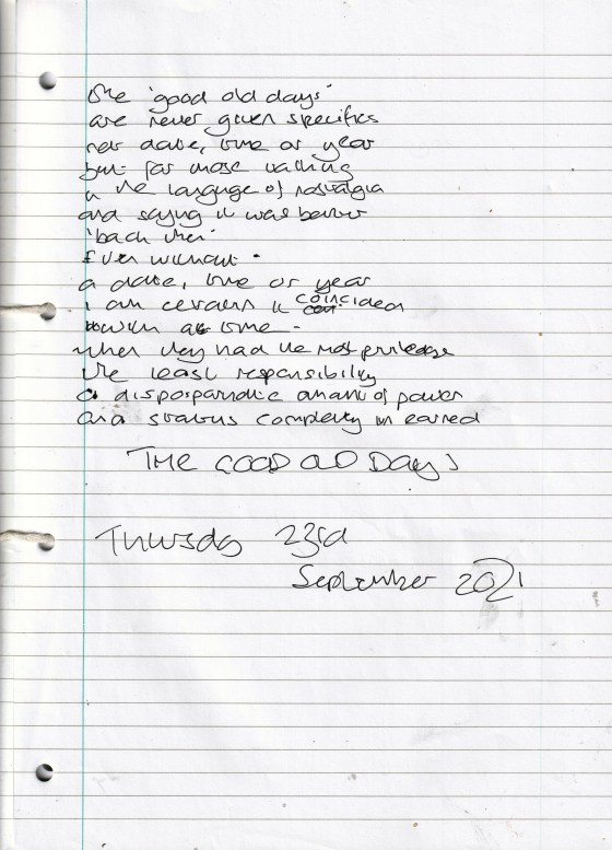 The Good Old Days – Written Thursday 23rd September 2021 (Aged 46)
