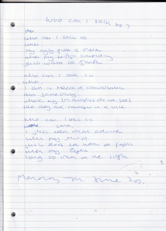 Who Can I Talk To? – Written Monday 7th June 2021 (Aged 46)