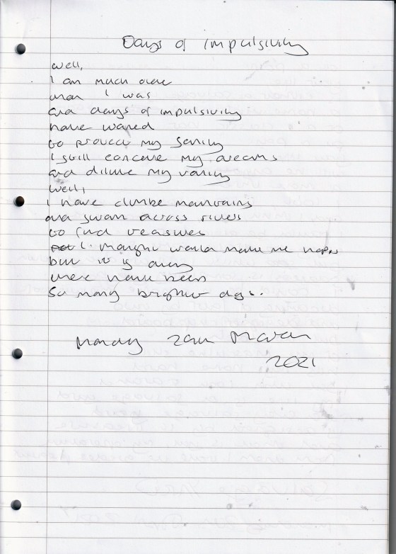Days of Impulsivity – Written Monday 29th March 2021 (Aged 46)