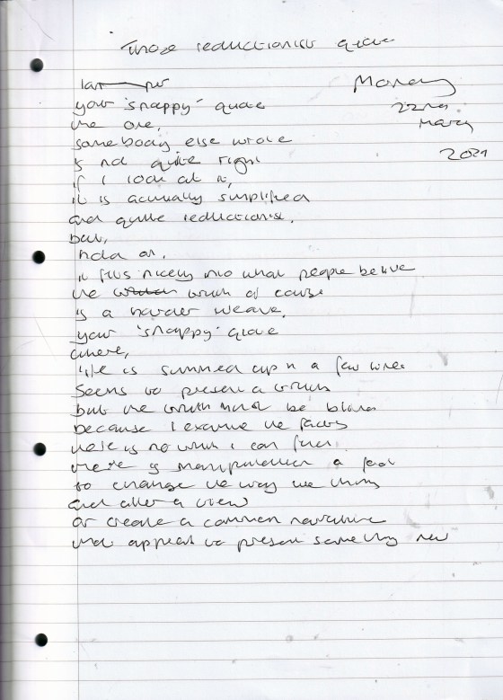 Those Reductionist Quotes – Written Monday 22nd March 2021 (Aged 46)