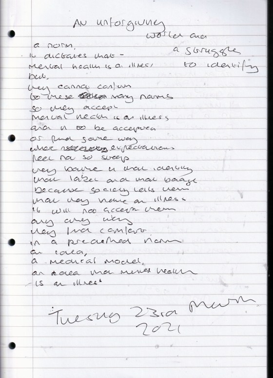 An Unforgiving World and a Struggle to Identify – Written Tuesday 23rd March 2021 (Aged 46)