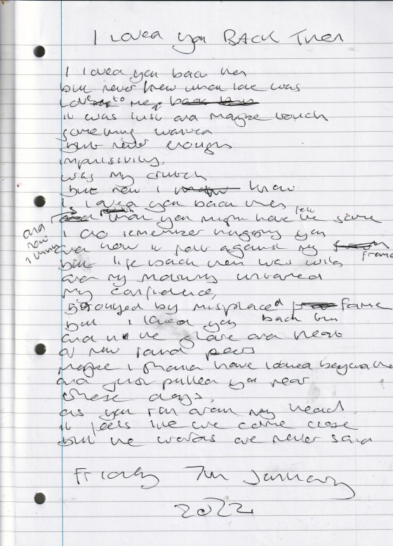 I Loved You Back Then – Written Friday 7th January 2022 (Aged 46)