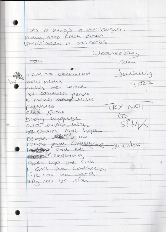 Try Not To Sink – Written Wednesday 12th January 2022 (Aged 46)