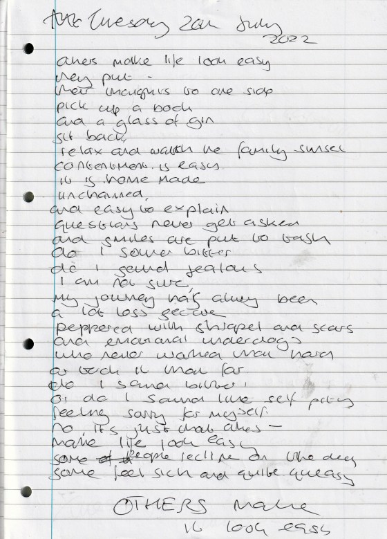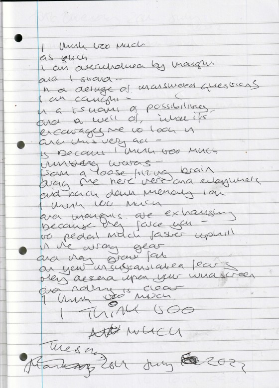 I Think Too Much – Written Tuesday 26th July 2022 (Aged 47)