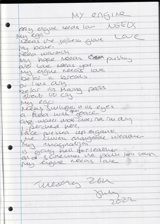 My Engine Needs Love – Written Tuesday 26th July 2022 (Aged 47)