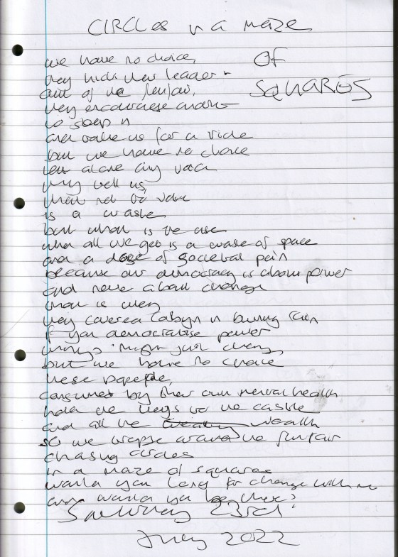 Circle in a Maze of Squares – Written Saturday 23rd July 2022 (Aged 47)