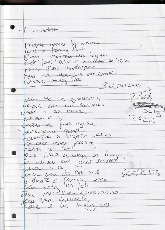 Secrets – Written Saturday 23rd July 2022 (Aged 47)