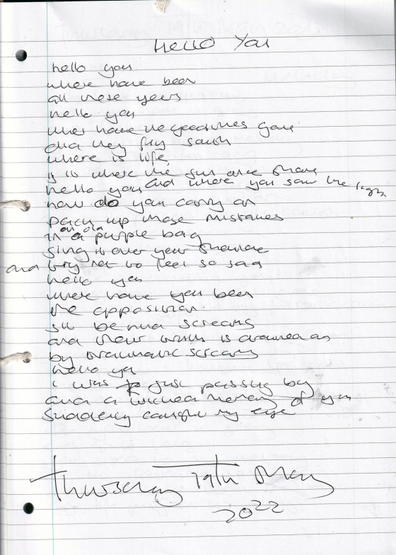 Hello You – Written Thursday 19th May 2022 (Aged 47)