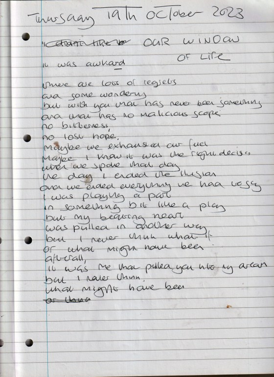 Our Window of Life – Written Thursday 19th October 2023 (Aged 48)