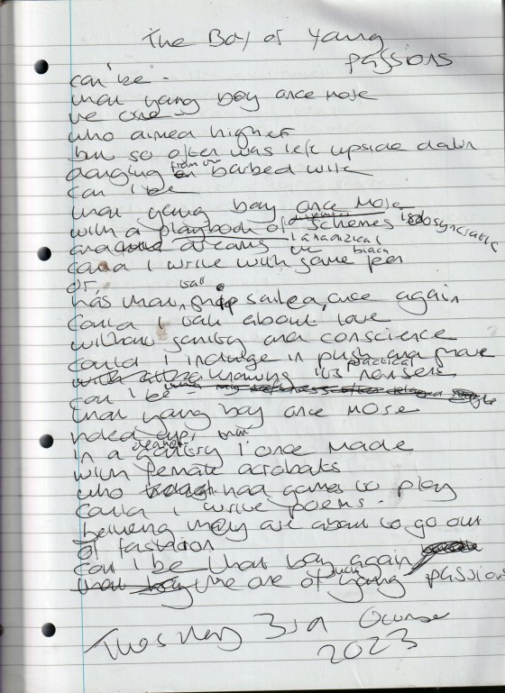 The Boy of Young Passions – Written Tuesday 3rd October 2023 (Aged 48)