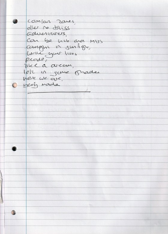 Barely Made comfort zones –offer no real bliss adventures,can be hit and miss caught in sunlight,write your own listspeople,are like … More