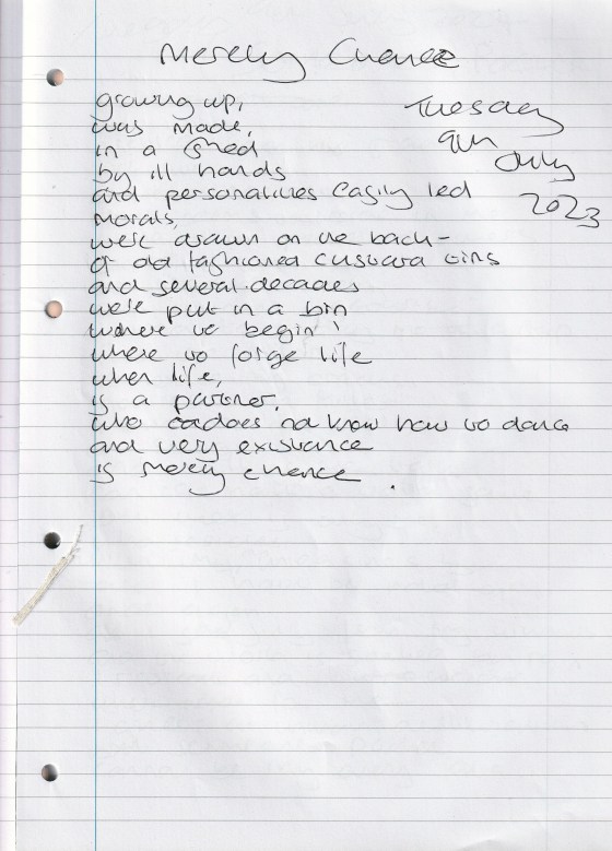 Merely Chance – Written Tuesday 9th July 2024 (Aged 49)