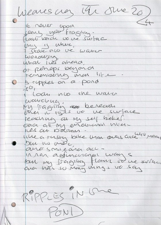 Ripples In The Pond – Written Wednesday 19th June 2024 (Aged 49)