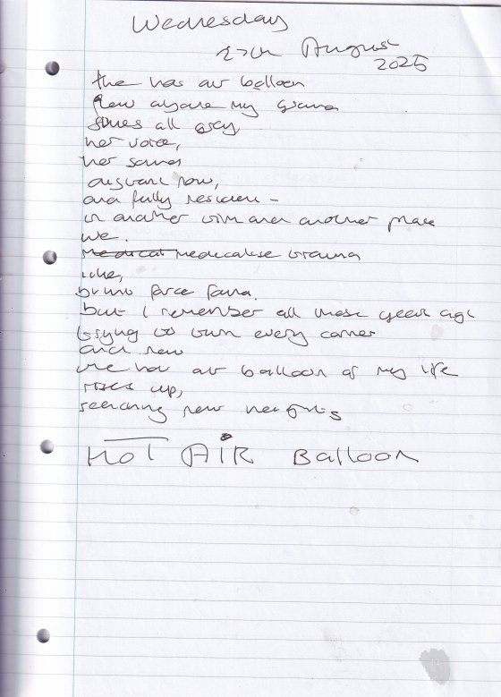 Hot Air Balloon – Written Wednesday 27th August 2025 (aged 50)