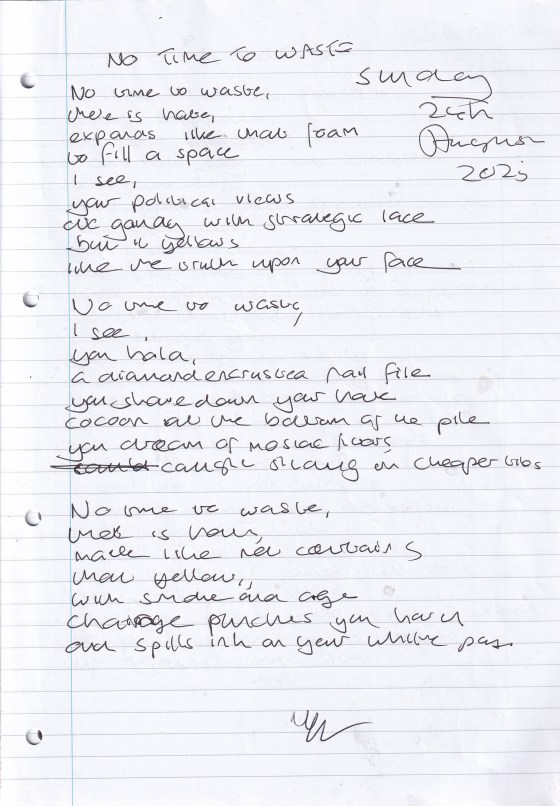 No Time To Waste – Written Sunday 24th August (Aged 50)