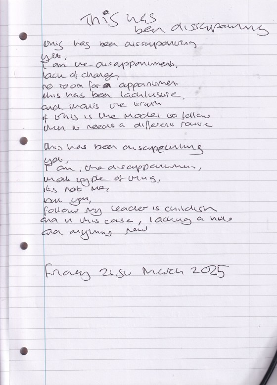 This Has Been Disappointing – Written Friday 21st March 2025 (Aged 50)