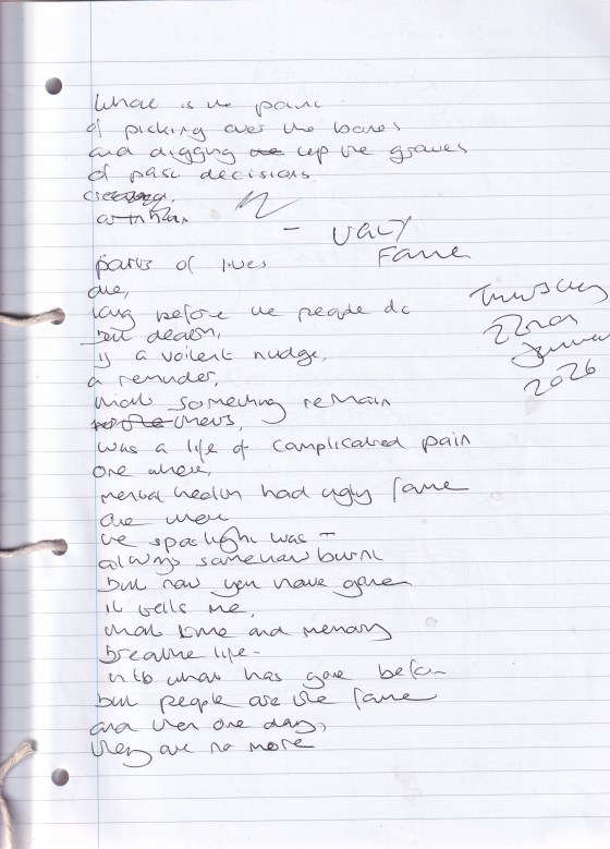 Ugly Fame – Written Thursday 22nd January 2026 (Aged 50) but death is a violent nudge, a reminder that something remains.
