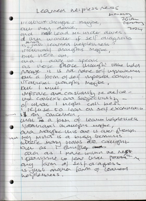 Learned Helplessness – Written Monday 26th February 2024 (Aged 49)