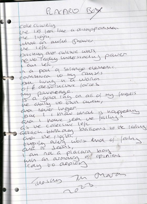 Placard Boy – Written Tuesday 7th March 2023 (Aged 48)
