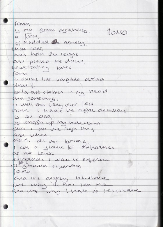 FOMO – Written March 2023 (Aged 48)