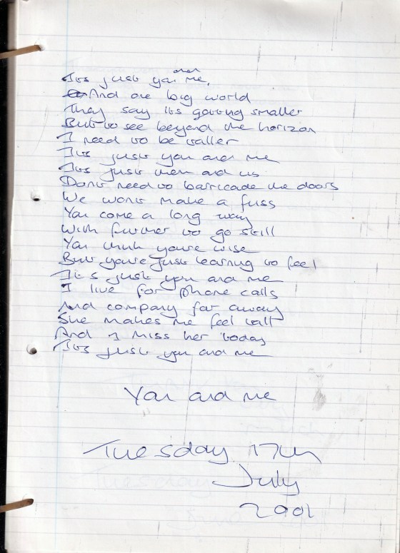You And Me – Written Tuesday 17th July 2001 (Aged 26)
