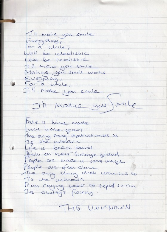 I Will Make You Smile – Written Wednesday 11th July 2001 (Aged 26)