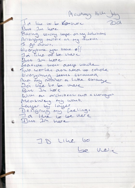 I’m Not Going Anywhere – Written Wednesday 11th July 2001 (Aged 26)