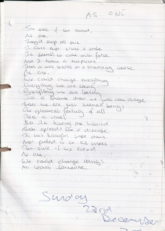As One – Written Sunday 23rd December 2001 (Aged 26)