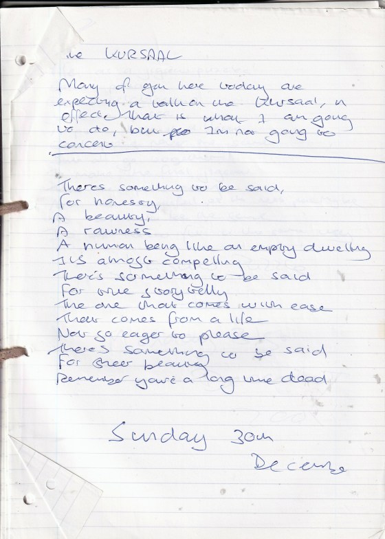 We Will Change It Next Year – Written Sunday 30th December 2001 (aged 26)
